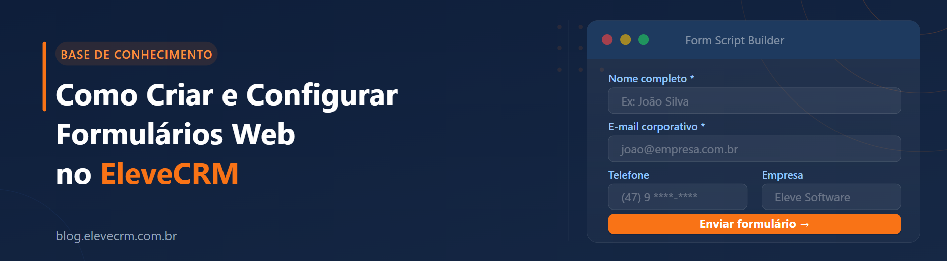 O EleveCRM oferece uma ferramenta nativa chamada Form Script Builder, que permite criar formulários web personalizados e incorporá-los diretamente em landing pages e sites. Com ela, você configura campos, personaliza a aparência, garante conformidade com a LGPD e automatiza o envio de e-mails, tudo sem precisar de código.