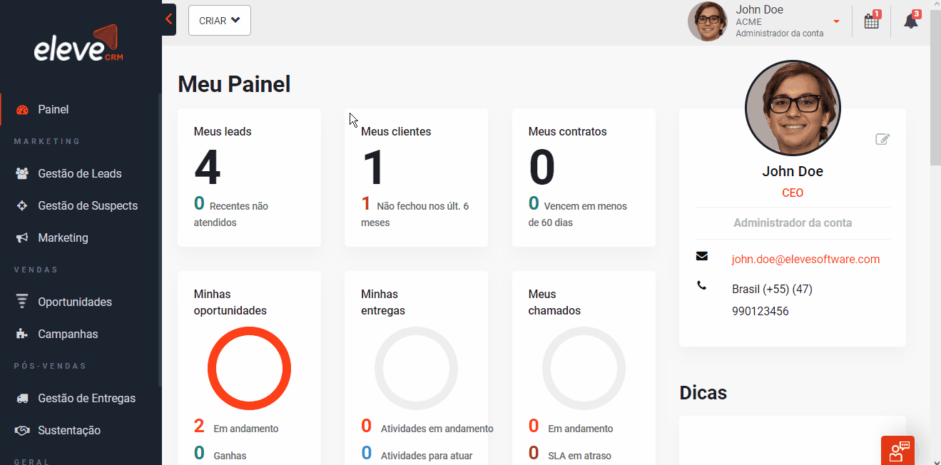 Caminho: Menu > Marketing > Campanhas > Selecionar o botão “+”