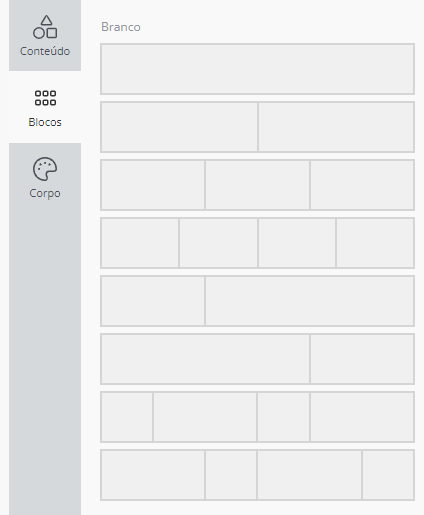 - Blocos: Adicione novos blocos com a divisão que achar melhor. É dentro de um bloco que algum conteúdo será inserido.