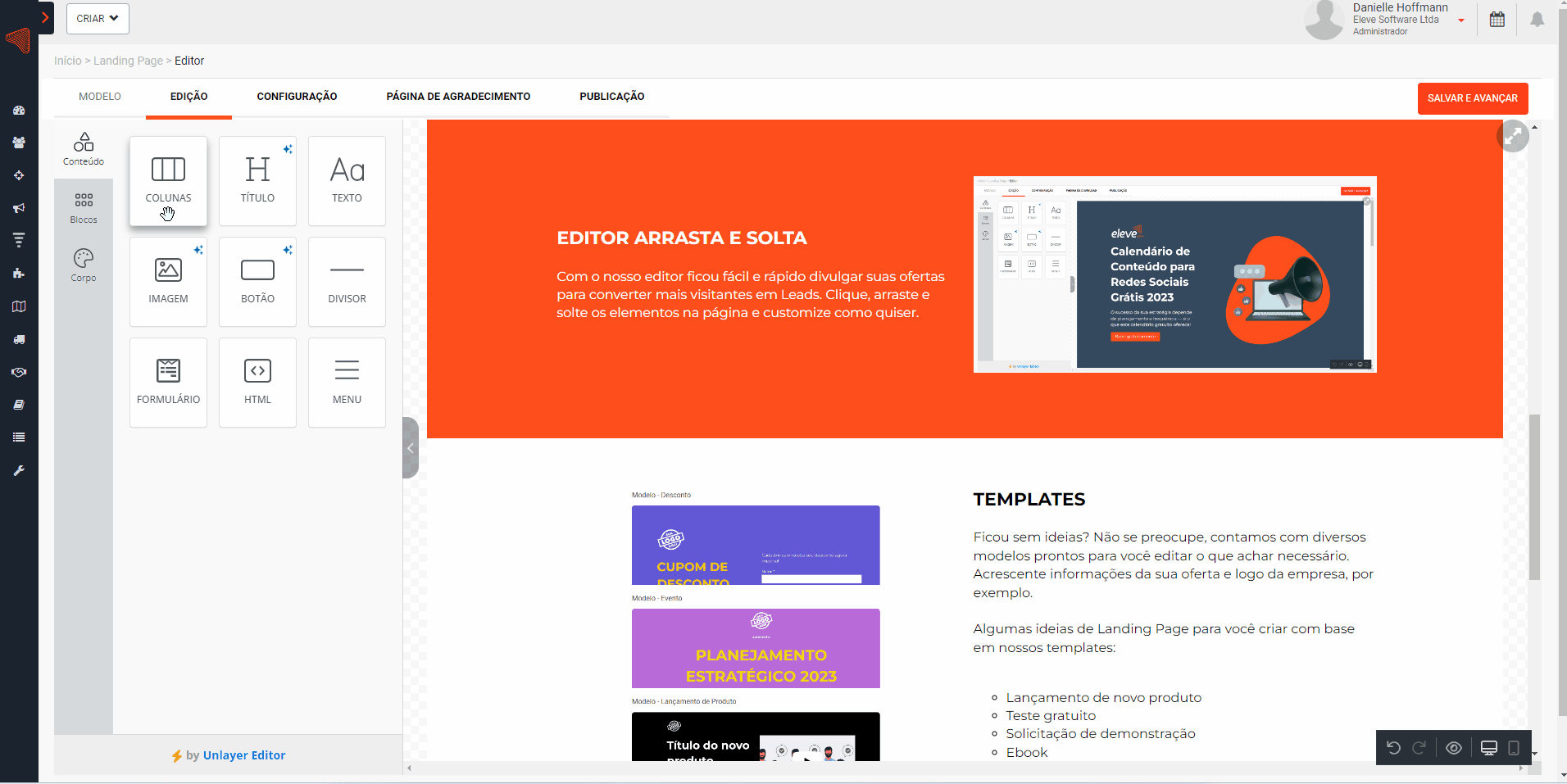 No Eleve é possível criar Landing Pages em poucos minutos à partir do caminho Menu > Marketing > Landing Pages e clicando no ’’+’’. Basta inserir o título desejado e começar a criar!