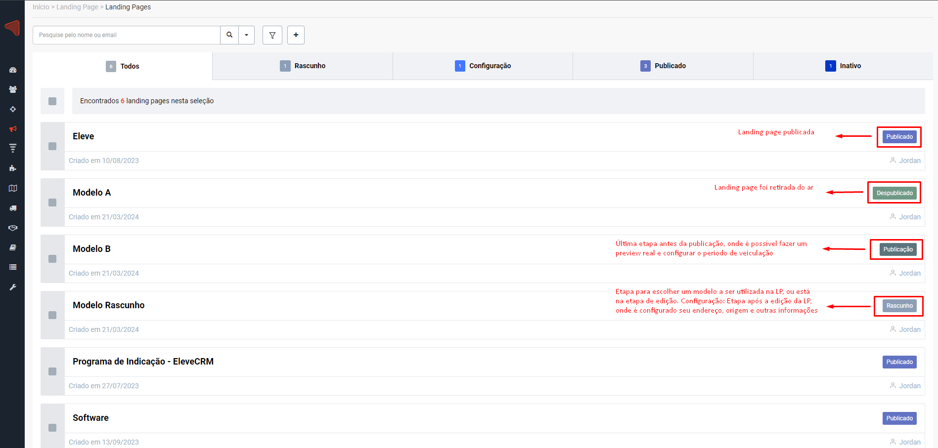 Os status de uma landing page servem para o usuário identificar em qual etapa ela se encontra.